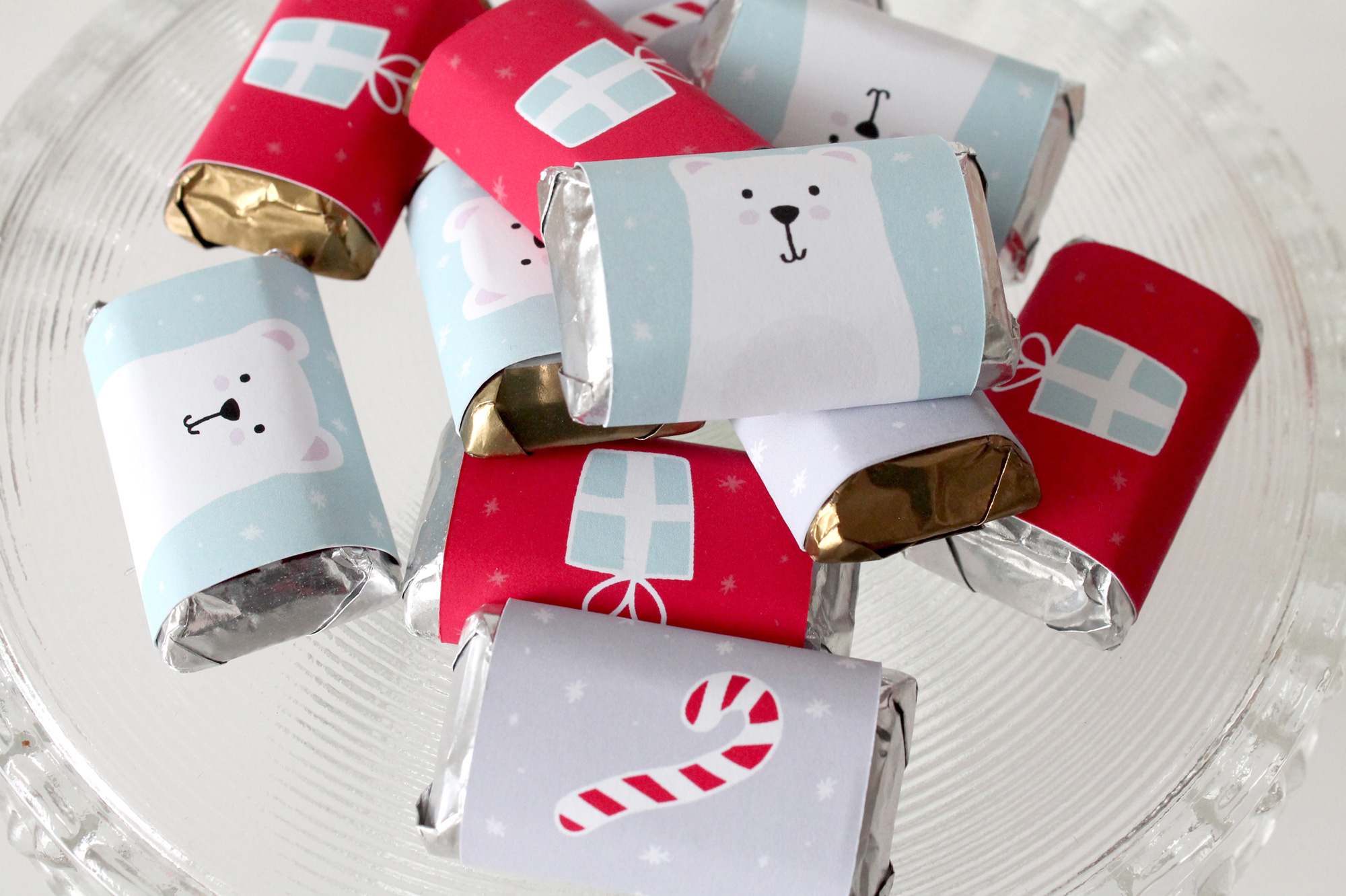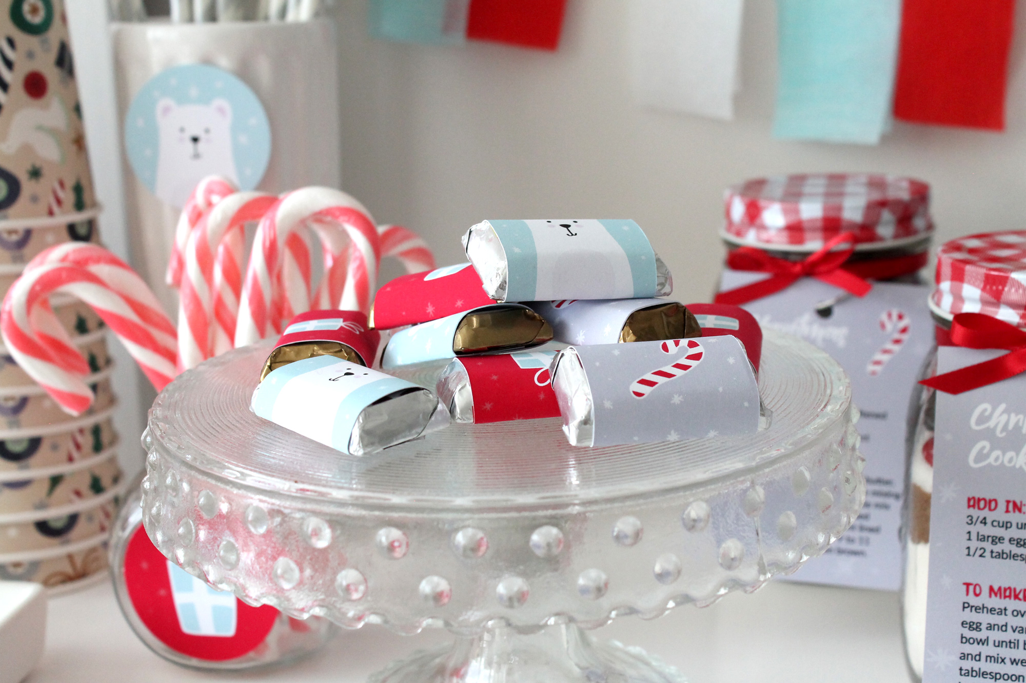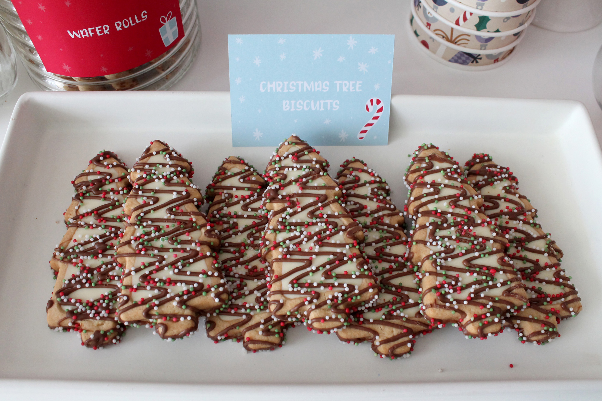 On a white tray I displayed these gorgeous Christmas tree shaped biscuits. I also used some Hershey’s Miniatures that I wrapped in the mini chocolate wrappers and placed them on a small cake stand in the centre of the table.