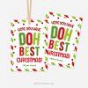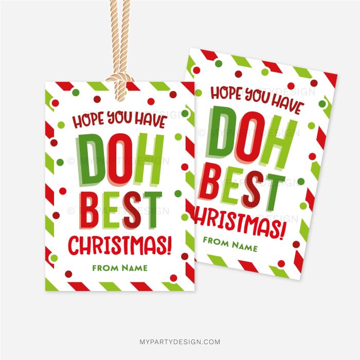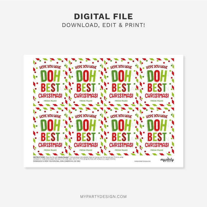 - Gift Tags / Cards; size 2,5” x 3,5” (≈ 6,5cm x 9cm); Wording “Hope you have Doh Best Christmas!”