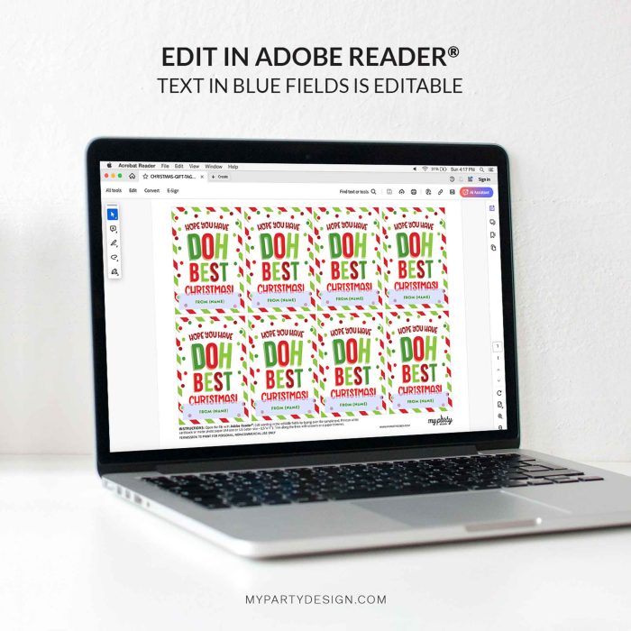 Make easy Christmas appreciation gifts for students or classmates this Christmas with this printable Doh Best Christmas Play Dough Gift Tag! Pair with play dough items for a thoughtful Christmas gift kids will love. Suitable for school teachers, preschool or daycare educators, co-workers, volunteers, staff, family friends, clients, neighbors or class gifts. With editable text, you can personalize it with a name or custom message.