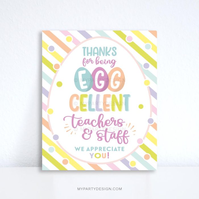 • Appreciation Sign; size 8” x 10”; Wording “Thanks for being EGGcellent Teachers and Staff. We appreciate you!” (non-editable)